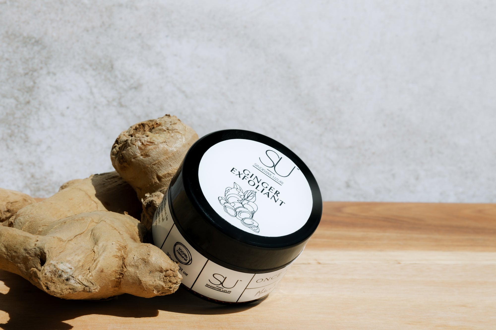 The SU Ginger Exfoliant removes dead cells from the surface of the skin; with its main ingredients being ginger, calendula and carotene oils.